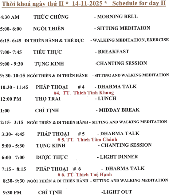 Trong đây cũng có những vị trên dưới sáu mươi nhưng sự tu hành rất tinh tấn.Tất cả Tăng chúng đều sống chung trong tinh thần hòa hợp thương yêu, trợ duyên sách tấn cùng nhau tu tiến. Cuối tuần, hai ngày thứ bảy và chủ nhật là thời khóa tu thường lệ dành riêng cho Phật Tử do chư Tăng hướng dẫn. Ngoài ra nếu có Thiền Sinh nào muốn đến Thiền Viện tu tập dài hạn cũng được khuyến khích, giúp đở. Hiện nay số Phật Tử qui tụ về Thiền Viện mỗi ngày thêm đông bởi do pháp môn tu thiền của Hòa Thượng hội đủ ba tiêu chuẩn: Khế cơ, khế lý, khế thời, cho nên các Phật Tử dễ cảm thông và thực hành đạt được nhiều an lạc. Những người Tây Phương cũng bắt đầu hiểu biết, tiếp nhận Thiền học Phật Giáo qua hệ thống thông tin Internet và sách vở, các bài giảng của Hòa Thượng Tôn Sư đã được phiên dịch ra ngoại ngữ nên cũng tìm đến xin tu học. Vì vậy Thiền Viện Đại Đăng cũng mở thêm một lớp tu Tu học hành thiền cho nhóm Phật Tử người Mỹ vào chủ nhật mỗi tuần. Các Phật tử rất hài lòng mản nguyện và vô cùng hoan hỷ, nhận thấy rằng bao nhiêu công khó đóng góp tài lực của mình để hổ trợ cho Thiền Viện Đại Đăng được hình thành, là một việc làm giá trị có ý nghĩa chính đáng. Tăng đoàn đều là những người đang cố gắng phấn đấu vương lên, tu hành thanh tịnh mẫu mực, để xứng đáng cho các Phật tử đủ niềm tin trở về nương tựa và tu học.